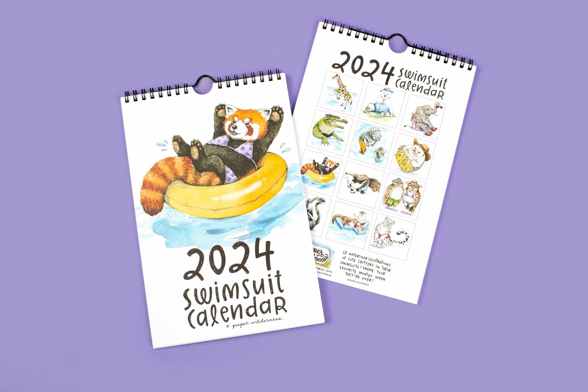 2024 Swimsuit Animals Watercolor Wall Calendar โ Paper Wilderness